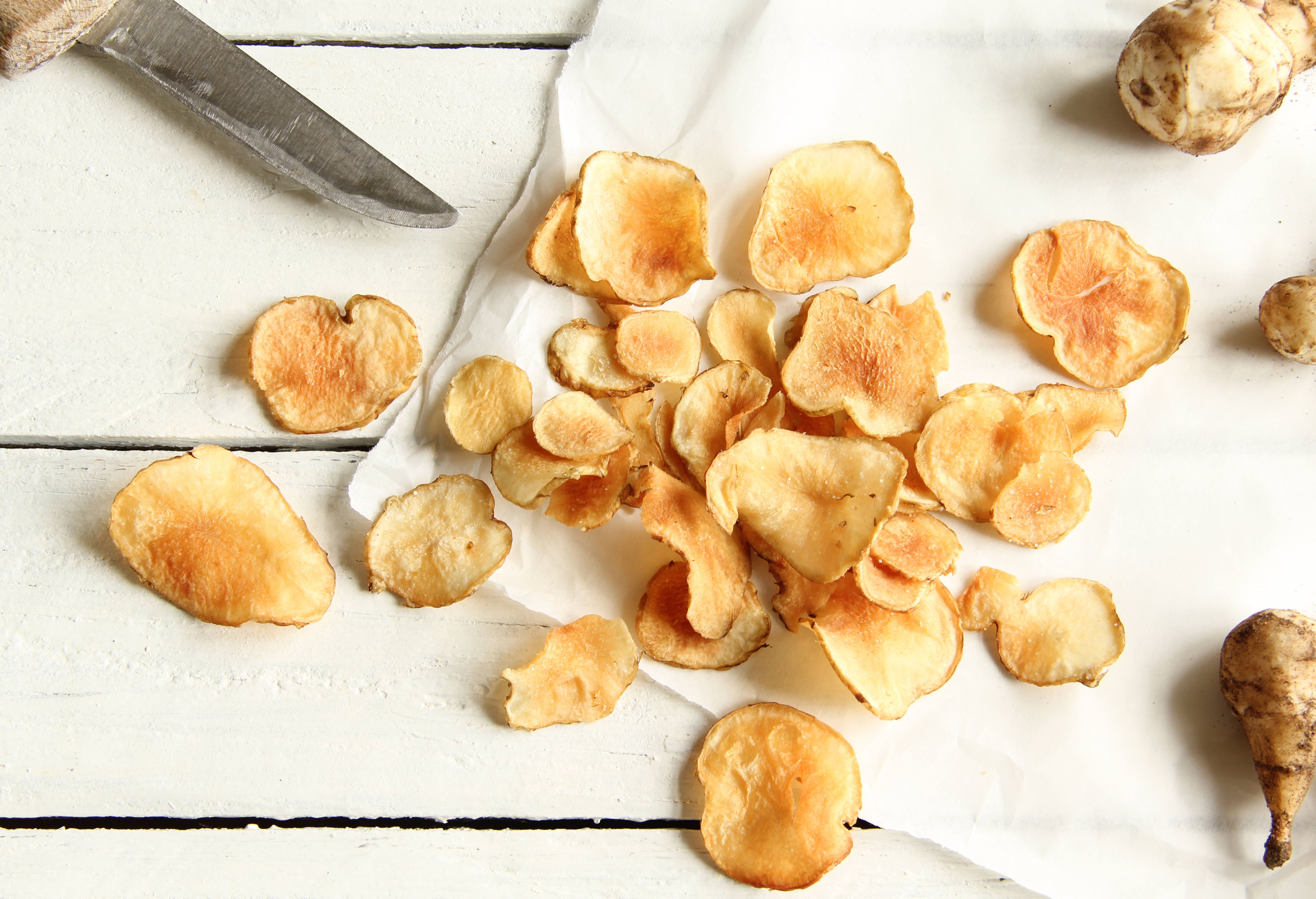 Topinambur, olio di girasole ad alto contenuto oleico, sale.